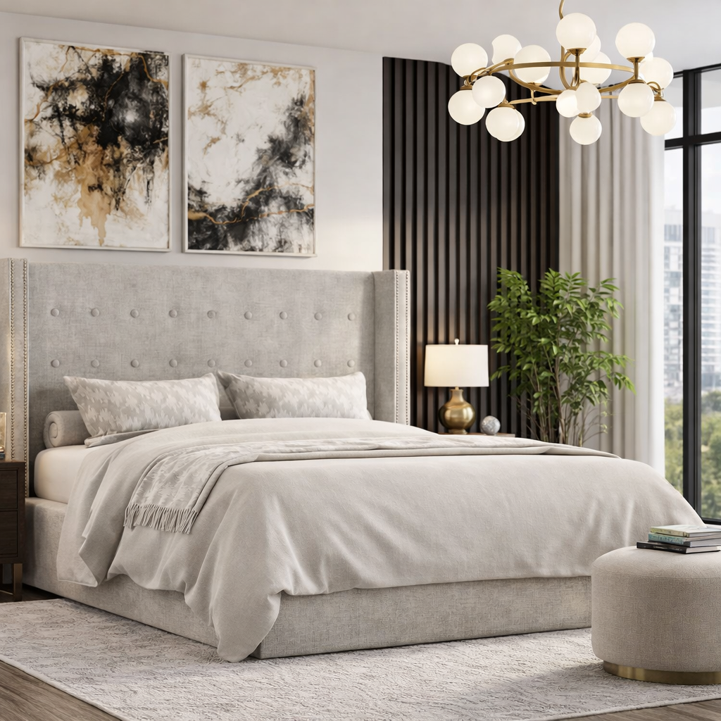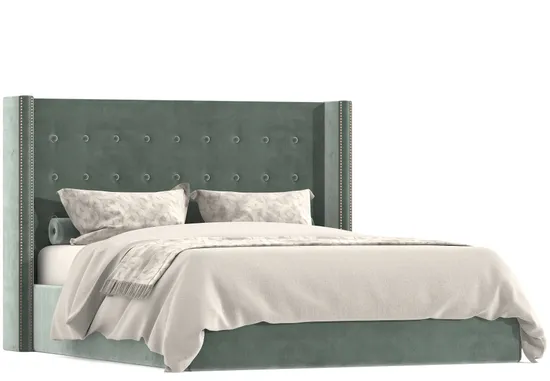 Двуспальная кровать Вивальди элегантная интерьерная кровать с изголовьем, украшенным декоративными пуговицами. Боковые ушки в этой модели ограничивают пространство, создают внутри атмосферу защищенности и комфорта. А еще это ограничитель для подушки во время сна! Можно дополнить ушки декором из мебельных гвоздиков. Интерьер вашей спальни будет выглядеть изысканно и роскошно, если вы выберите эту модель!