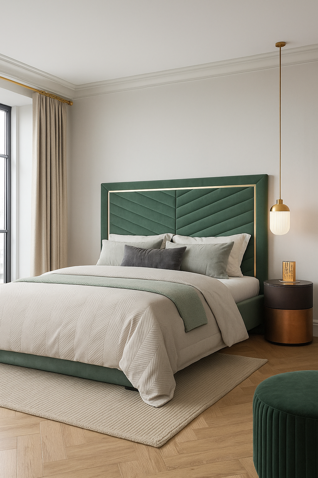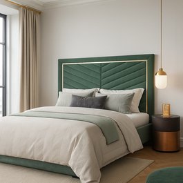 Интерьерная кровать Вивьен Дизайн для современной спальни. Мягкое изголовье – это всегда беспроигрышный вариант для любого дизайна интерьера. Металлический молдинг (на выбор золото/серебро) добавляет шика. Бесспорная оригинальность изделия, которое вы выбрали по дизайну, цвету, размерам, подчеркивает уникальность спальни. Очень важная деталь это подъемный механизм кровати, он скрыт от взгляда, но очень удобен в эксплуатации. Всегда будут в тренде мягкие кровати, придающие спальне уютности и стиля.