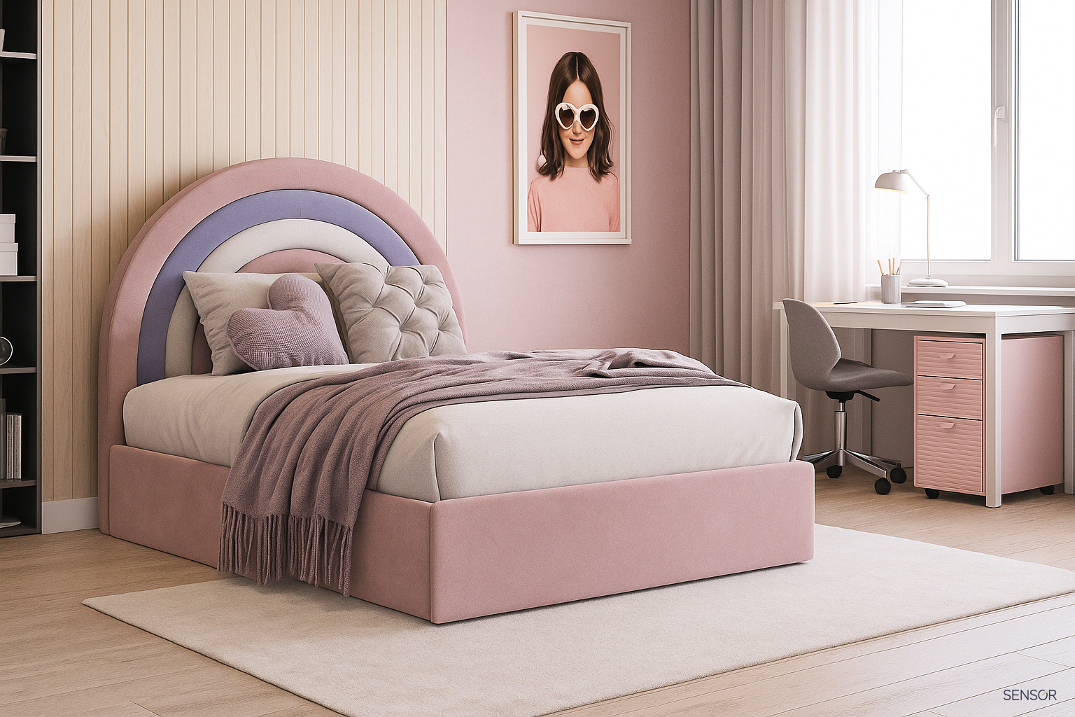Мягкая детская кровать Жасмин с дизайнерским изголовьем. Детство должно быть ярким! Детали на изголовье можно подобрать как разноцветные, под интерьер детской, так и сделать одного цвета. Ручная работа мастеров + современные технологии, такой тандем дает возможность изготавливать красивые качественные изделия, которые будут радовать вас и ваших детей!