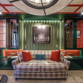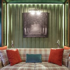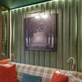Индивидуальная стеновая панель была сделана на заказ для передачи "Квартирный вопрос" в гостиную комнату в книжном переплете.