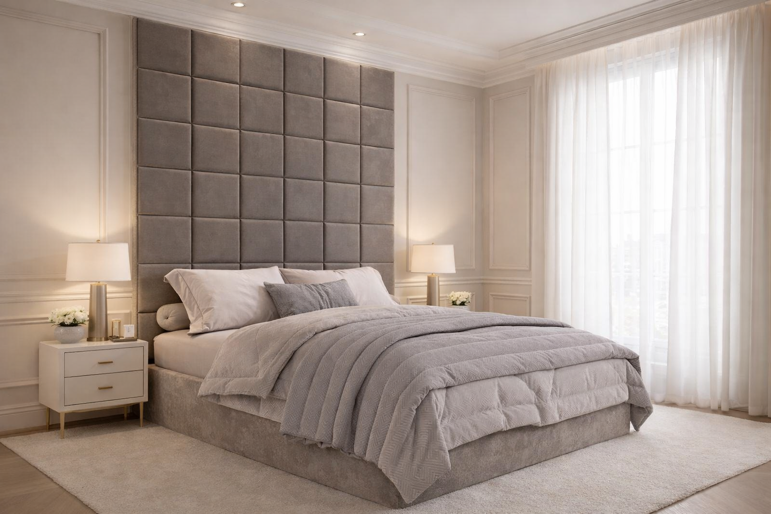 Стеновая панель Квадро / Quadro - правильные геометрические формы создают атмосферу упорядоченности и гармонии. Данный стиль отличается элегантной простотой, поэтому хозяева могут поэкспериментировать с интерьером. Каждый элемент выполнен вручную, аккуратно собран и перетянут. Панель собирается из отдельных квадратов как мозаика, крепится на жидкие гвозди.